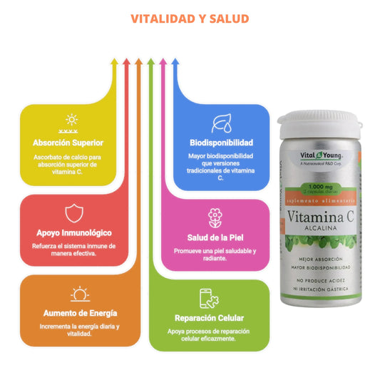Vitamina C Alcalina 1000 mg 60 Cápsulas | Alta Absorción Sin Acidez