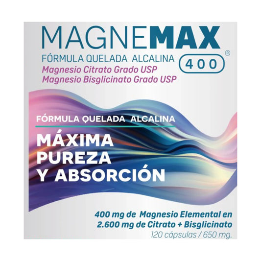 MagneMax 400 - Magnesio Citrato y Bisglicinato, 120 cápsulas, 650 mg
