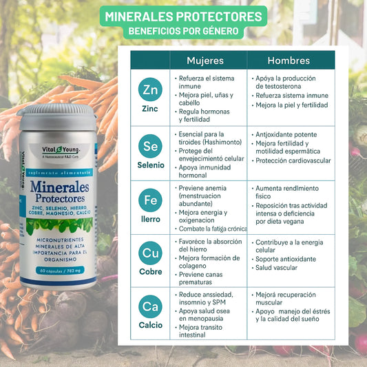 Minerales Protectores - Zinc, Selenio, Hierro, Magnesio y Calcio