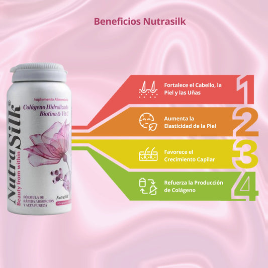NutraSilk Colágeno Hidrolizado, Biotina y Vitamina C – Piel y Cabello